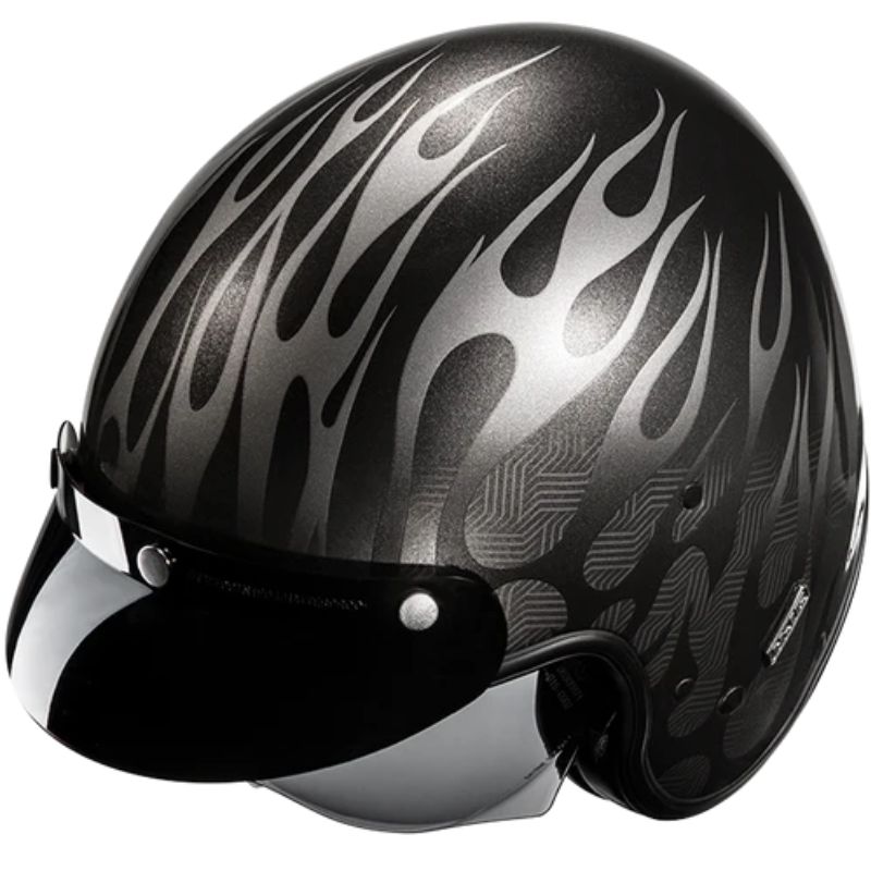 El V31 es un casco abierto de estilo retro compuesto por un avanzado compuesto de fibra de vidrio calota para proporcionar un casco ligero. Este casco ¾ cuenta con un sol integrado de 3 posiciones Pantalla con revestimiento anti-arañazos que se despliega fácilmente para deslizarse hacia arriba o hacia abajo. Para realzar la sensación vintage, el V30 cuenta con un interior de piel y ante y un soporte para la correa de las gafas. Las almohadillas son extraíbles y lavables y los bolsillos de los altavoces están preparados para la comunicación Bluetooth.