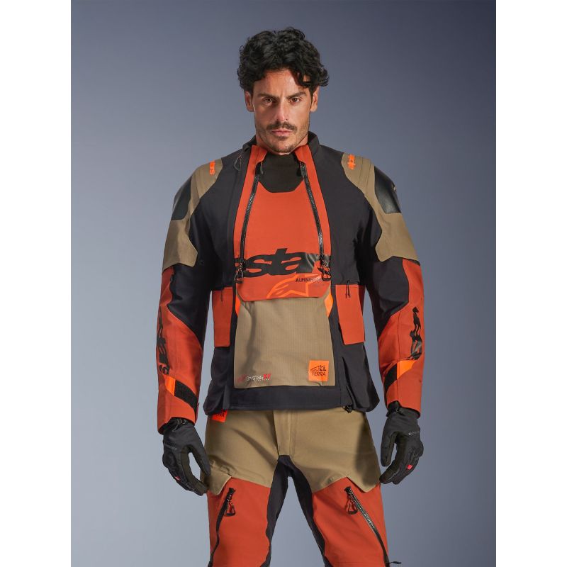 - Cremalleras Multifuncionales: Las cremalleras de panel frontal de ventilación YKK® AQUASEAL® de dos vías garantizan una impermeabilidad perfecta en condiciones extremas, pero también permiten un flujo de ventilación ajustable para un control climático efectivo.