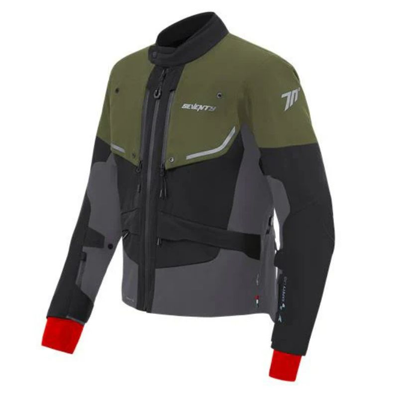 La chaqueta SD-JT45 Expedition de Seventy 70 está diseñada para los motociclistas más exigentes, ofreciendo protección y confort en cualquier clima y terreno. Fabricada en un resistente material laminado de alta resistencia, esta chaqueta integra las tecnologías avanzadas Dry70, Warm70 y Atop, proporcionando impermeabilidad, aislamiento térmico y un ajuste personalizado para una comodidad incomparable en largas travesías. Sus bolsillos de ventilación magnéticos en el pecho y el ajuste magnético en los bíceps permiten una regulación rápida y eficiente de la temperatura. La chaqueta cuenta con protectores Windflex de nivel 2 en codos y hombros, además de un bolsillo para añadir un protector de espalda opcional. El diseño se complementa con detalles de neopreno en el cuello y zonas reflectantes para mayor seguridad en condiciones de baja visibilidad.