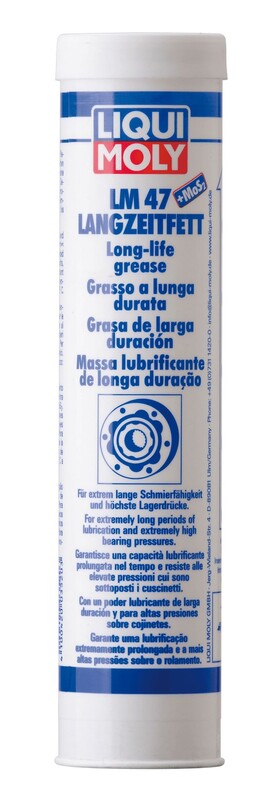 Durante el funcionamiento, en los puntos de deslizamiento se forma una finísima película de disulfuro de molibdeno que conserva sus propiedades lubricantes durante un tiempo prolongado incluso después de cesar el suministro de grasa.