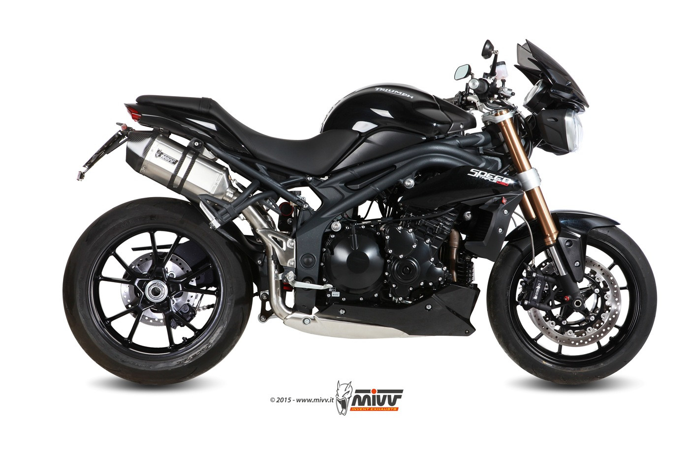 Mivv 2 Slip-On Speed edge St. Steel con tapa carbono Triumph Speed Triple 2011-15