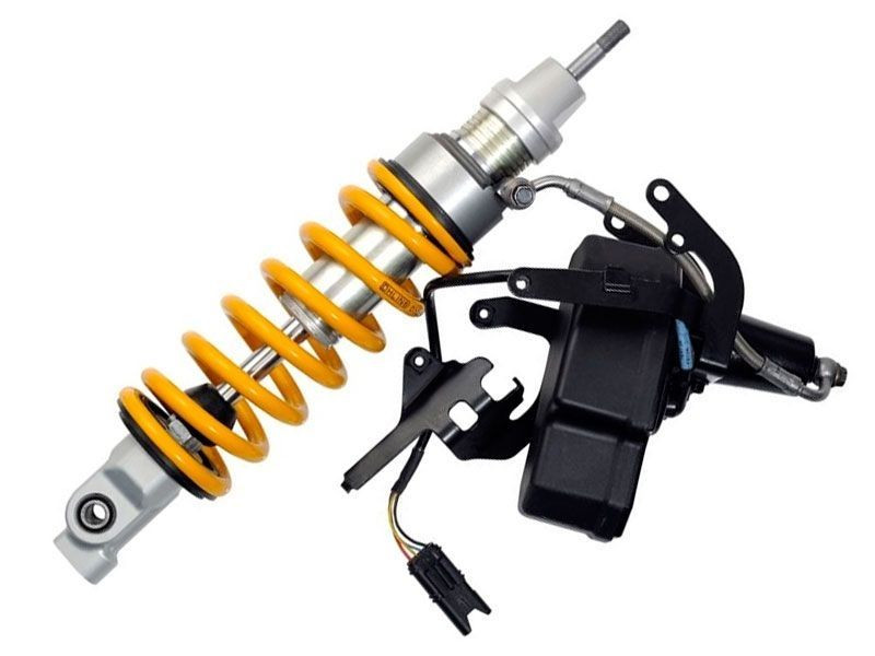 Öhlins S36DRS completamente revisable y con muelles, el amortiguador utiliza el pie y los conectores originales, lo que permite no tener que cambiar nada del sistema electrónico original, manteniendo inalteradas las funciones y mandos preestablecidos. Dedicado exclusivamente a motocicletas equipadas con ESA con material original SHOWA.