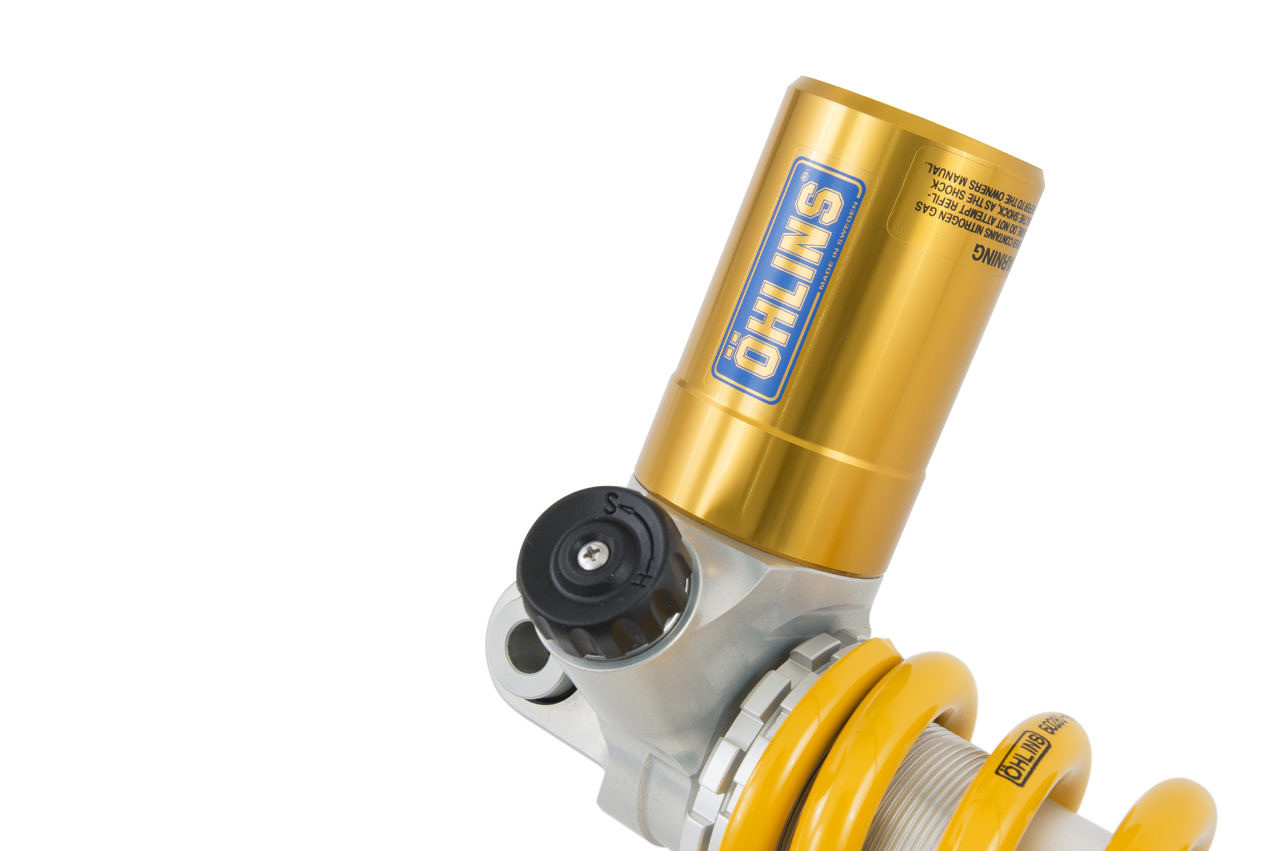 S46PR1C1 monotubo de 46 mm, eje de 16 mm, regulable en rebote y precarga del muelle con contratuerca.