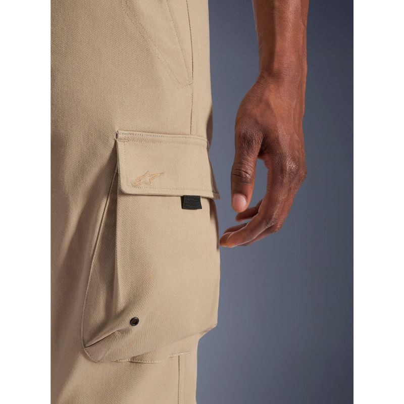 - Acabados Modernos: Costuras superiores sutiles tono sobre tono, costuras internas con apariencia de orillo, y hebilla, botones de presión y tiradores de cremallera con la marca Alpinestars le dan a los pantalones una estética refinada y minimalista.
