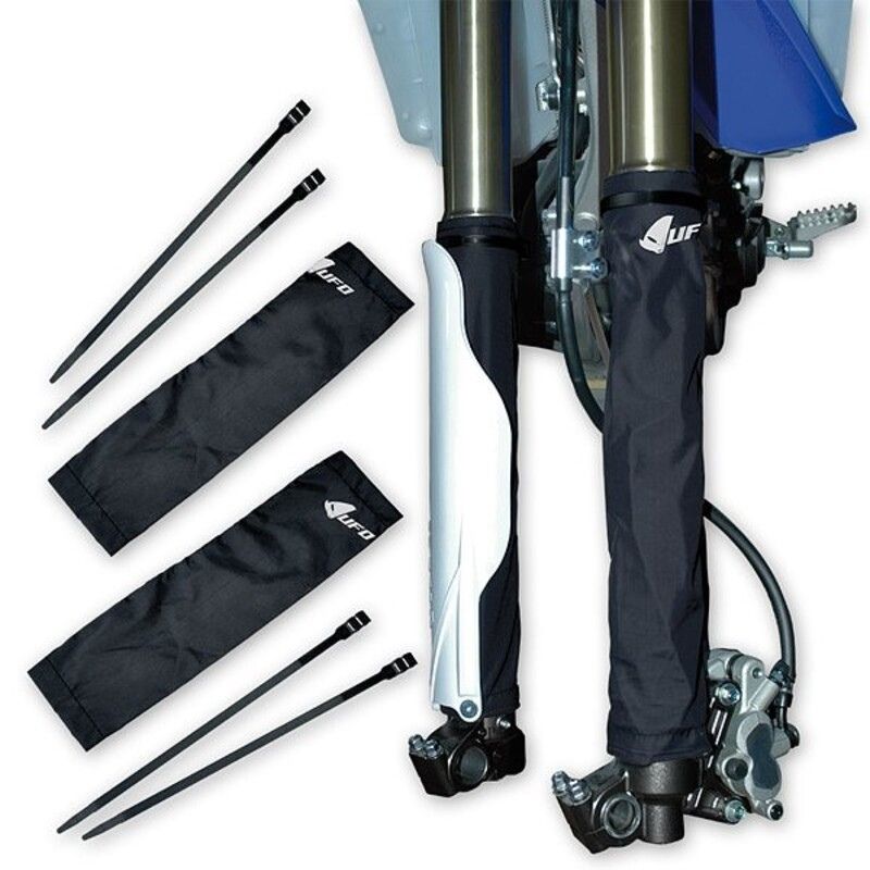 - Funda externa para barras de horquilla, evita que se llenen de barro minimizando así el efecto abrasivo del barro sobre los tubos de horquilla.