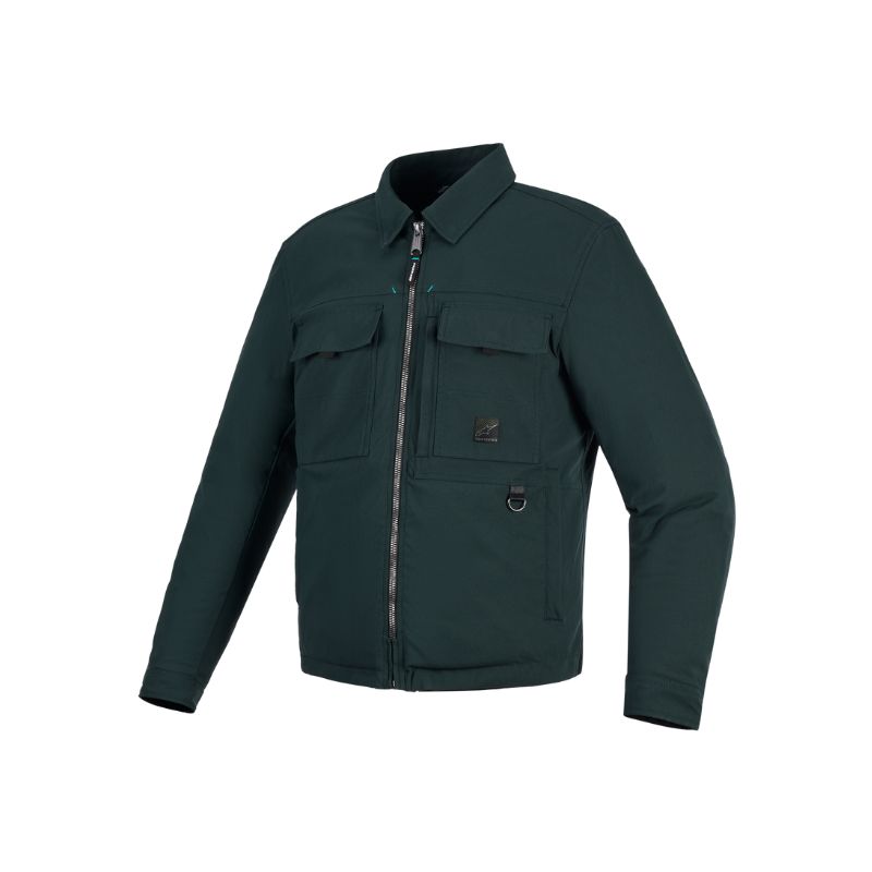 - Acabados refinados: Costura triple, tiradores de cremallera y botones a presión con la marca Alpinestars, logotipos bordados y tejidos, y acentos de cinta decorativa le dan a la sobrecamisa un aspecto pulido e inspirado en la utilidad.